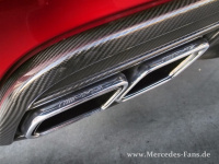 Das gilt auch für die Optik! Die Front des Black Series zieren aufmerksamkeitsheischend - nach dem Motto "Flipper sind unser bester Freund" - Kohlefaser-Splitter. Das Heck wird von einem monströsen Spoiler dominiert. Man fragt sich unweigerlich: Wow, wie machen das eigentlich die Affalterbacher, dass sie sie diese Theke am Heck zugelassen bekommen?