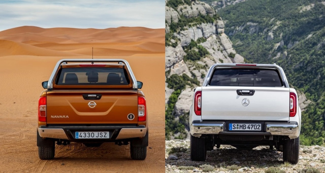 Auch das breitere Heck der X-Klasse wirkt moderner, wertiger und strahlt nicht zuletzt dank der LED-Rückleuchtengrafik eine gehörige Portion Eigenständigkeit aus. Im Leiterrahmen stecken auch breitere Achsen als im Nissan. Daraus resultiert nocht nur eine bulligere Optik, sondern vor allem auch ein deutlich stabileres Fahrerhalten.