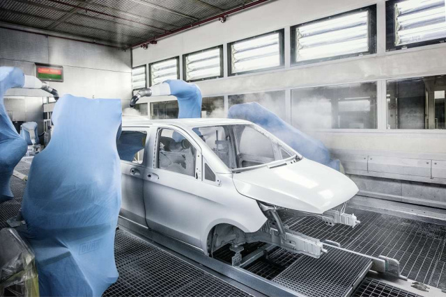 Für den Decklack der neuen Vans verwendet Mercedes-Benz auch High-Solid-Lacke. Bei ihnen handelt es sich um besonders widerstandsfeste kratzfeste Lacke mit einem hohen Festkörpergehalt. Sie eignen sich ideal für den rauen Einsatz von gewerblich genutzten Transportern.