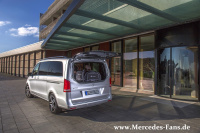 Die V-Klasse erweist sich auf diese Art als echter Alleskönner, der von der Familien-Limousine bis zum Shuttle oder Freizeitfahrzeug in viele Rollenschlüpfen kann, dabei aber immer voll und ganz Mercedes ist.