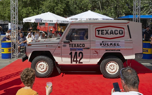 Erstmals dabei bei SCHÖNE STERNE war das Völkel Dakar Team, das bei der Dakar Klassik einen viel beachteten Klassensieg mit einem 280GE heraus fahren konnte, der eine originalgetreue Replik des Paris-Dakar Sieger Fahrzeug von 1983 war, damals pilotiert von Jackie Ickx. Außerdem hatten die Spezialisten für Gewindewerkzeuge auch einen gewaltigen Mercedes Truck NG 2636 6x6 mitgebracht, der auch bei der nächsten Rallye wieder als Service Truck fungieren wird.