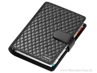 Zur Auswahl gehört eine praktische und zugleich elegante Herren-Reisebrieftasche aus italienischem Kalbsleder (129,90 Euro*) aus der BUSINESS-Line, die auch eine kalbslederne Geldbörse (89,90 Euro*) und einen hochwertigen Kugelschreiber mit Drehmechanismus aus anthrazitfarbenem Metall und 3-D Mercedes-Stern auf der Kappe (89,90 Euro*) umfasst. Ebenfalls für Herren gedacht sind ein markanter Leder-Organizer mit Rautensteppung und AMG-Logo in Metall, handgefertigt in Deutschland (199,90 Euro*) sowie eine in Handarbeit gefertigte, rot gemusterte Krawatte von OLYMP aus 100 % Seide (39,90 Euro*).