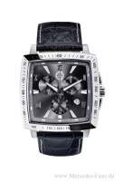 Was die Stunde schlägt, können Damen und Herren an exquisiten Armbanduhren ablesen das Damenmodell kombiniert Edelstahl mit einem schwarzen Echtlederband und ist mit CRYSTALLIZED Swarovski Elements veredelt (99,90 Euro*). Die viereckige Herrenausführung hat ein schwarzes Lederband mit Krokoprägung, ein Edelstahlgehäuse und ist als Chronograph mit einer Stoppfunktion ausgestattet (159,90 Euro*).