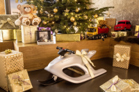Auf den coolen Bobby-Benz-Schlitten dürfte nicht nur Rudolph, das Rentier, neidisch sein: Mercedes-Benz Design und die Farben Silber/Schwarz sorgen für sportlichen Chic. Metallkufen und eine gefederte Lenkachse zählen zu den technischen Highlights. Die Serienausstattung beinhaltet Hupe sowie Kordel und Griff zum Ziehen. Der Schlitten ist TÜV- und GS-getestet und für Kinder von vier bis zehn Jahren geeignet.Selbstverständlich ebenso silberfarben ist der Silberpfeil W 125 Pullback im Maßstab 1:64. Das Modell zum Aufziehen fertigt Minichamps für Mercedes-Benz. Geeignet ist es für Kinder ab drei Jahren.