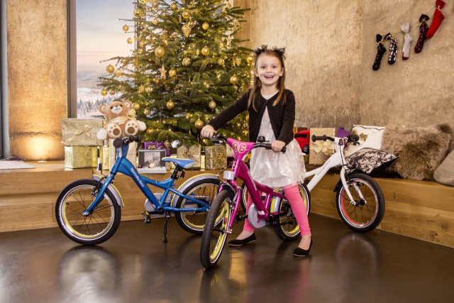 Kids ab ca. vier Jahren und einer Körpergröße von 105 Zentimetern können Zweiraderfahrungen mit dem Kinderfahrrad 16 Zoll sammeln, das in den Farben südseeblau, pink und weiß erhältlich ist. Weitere Merkmale sind Rücktrittbremse und Felgenbremse vorne, robuste Schutzbleche aus Metall, Softgriffe und Vorbau mit Prallschutz und Seitenständer. Auf den farbigen Felgen sind 16-Zoll-„Big Apple“-Reifen von Schwalbe montiert. Die Sitzhöhe ist von ca. 50 bis 59 cm verstellbar. Dazu passend gibt es den Fahrradhelm Kinder, den uvex in Deutschland für Mercedes-Benz fertigt. Der schwarze Kunststoff-Helm ist eine robuste, schlagfeste In-mold-Konstruktion und EN DIN 1078-/TÜV-/GS-zertifiziert. Zu den Ausstattungsdetails zählen Komfortverschluss, Fliegennetz, Sicherheits-LED und drei austauschbare Crossblenden in den Farben Südseeblau, Pink und Weiß. Die Größe des verstellbaren Helms beträgt ca. 50 bis 55 cm.