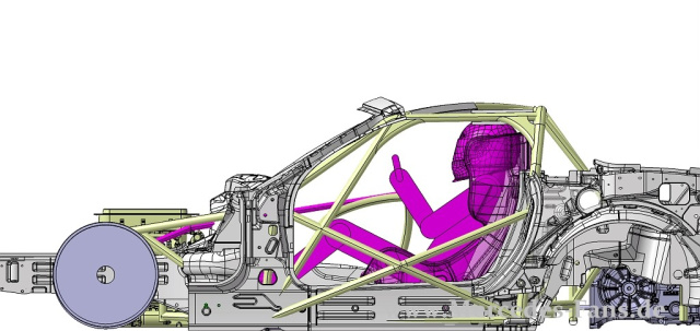 Gut zu erkennen: die erleichterte Rohkarosse wurde durch einen Gitterrohrramen verstärkt, die kompakte Motor-Getriebeeinheit sitzt mehr zur Fahrzeugmitte und auch die Fahrerposition wurde besserer Balance optimiert.