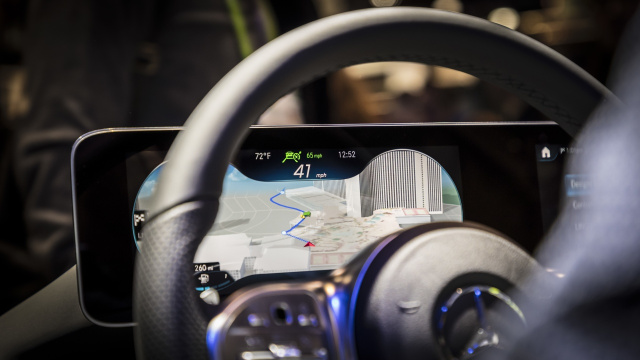 Die in MBUX integrierte Festplatten-Navigation auf Basis von HERE-Kartendaten ahnt nicht nur Ziele voraus, schlägt interessante Ziele (POI - Points of Interest) vor oder navigiert zur nächsten Tankstelle. Als Onboard-Navigation funktioniert das auch, wenn keine Online-Verbindung möglich ist.
