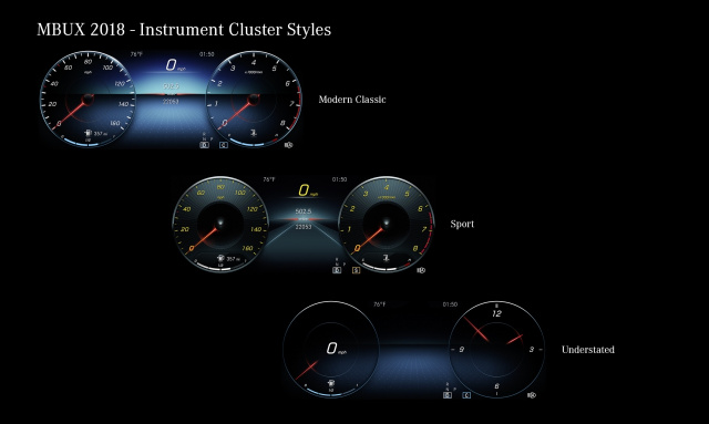Hinter dem Design von MBUX steht der ganzheitliche Ansatz, die komplexer werdende Bedienung des Fahrzeugs möglichst benutzerfreundlich und gleichzeitig sinnlich erlebbar zu machen. Die Verschmelzung von realer und virtueller Welt schafft neue Dimensionen in den Bereichen Komfort, Sicherheit und modernem Luxus. MBUX erlaubt es dem Benutzer, Fahrzeugfunktionen spielerisch und intuitiv zu bedienen: Hochwertige, aus den Konstruktionsdaten gerenderte und animierte 3D-Darstellungen des Autos auf dem Bildschirm lassen sich in Echtzeit drehen und heranzoomen. Die Einstellungen werden einfach mit einem Fingertipp auf das 3D-Automodell geändert. Das Scrollen durch lange Menüs entfällt. Die Wirkung geänderter Einstellungen wird unmittelbar visualisiert und ist damit selbsterklärend. Ermöglicht wird dies durch den Einsatz eines besonders leistungsfähigen Nvidia Grafik-Chips der neuesten Generation, wie er bisher nur in Spielkonsolen zum Einsatz kam.